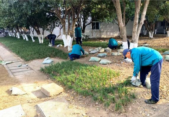 随着气温逐渐降低,校园植物陆续进入生长休眠期,此时正是开展绿化养护工作的关键阶段。为确保树木顺利越冬,促进来年茁壮成长,教育发展公司物业服务中心紧抓时机,坚持高标准、精细化原则,有序推进树干涂白、病虫害防治、整形修剪等系列养护工作,为校园绿地树木安全过冬提供坚实保障。 树木涂白,穿上“冬日暖装” 树干涂白是冬季苗木防寒的重要措施。白色涂层能反射阳光,减少昼夜温差带来的伤害,预防树皮冻裂;同时,涂白剂中的石灰等成分具有杀菌防虫作用,可有效降低病虫害发生率。自2025年11月起,物业服务中心组织绿化人员对校园内6000余株树木实施涂白作业。施工过程中,工作人员严格统一标准,确保涂白高度均匀、整齐美观。 科学修剪,塑造优美树形 冬季修剪有利于树木集中养分、加速伤口愈合,促进春季新梢萌发,同时也能减少病虫害隐患和风雪天气造成的损伤。绿化人员根据树木生长特性和景观要求,对校园内各类树木的枯枝、病虫枝、下垂枝及过密枝等进行修剪,并及时清理现场,保持环境整洁。 深翻施肥,储备生长能量 通过对主要草坪、花坛及苗木根际土壤进行适度深翻,既改善土壤通透性,又利于冬季蓄水保墒。结合深翻作业,有计划施加羊粪、菜饼肥等有机肥料,为植物根系补充养分,助力其在春季更好地萌芽、展叶、开花。 全年深耕,复绿增美焕新颜 回顾2025年全年,公司持续开展校园绿化维护与提升工作,累计完成草坪及地被补植等绿地复绿面积约6000平方米,进一步巩固和丰富了校园绿色生态格局。 冬季集中养护是全年绿化工作中“默默耕耘”的关键阶段。此次冬季集中养护,既体现了公司对生态环境建设的高度重视,也展现了共建绿色可持续校园的坚定决心,为提升育人环境、营造美丽校园奠定了扎实的生态基础。 |