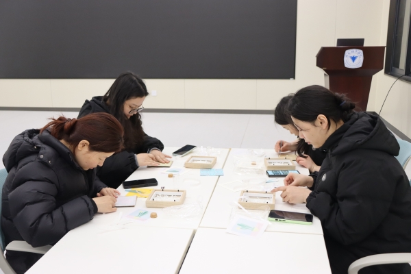 活动伊始,一场别开生面的非遗珍珠画手工体验课在欣瑞裙楼2楼229教室开启。杭州澄光韵创意科技有限公司的刘爽老师首先为大家讲解了宋锦的悠久历史、独特织造工艺及其蕴含的深厚文化内涵。在老师的悉心指导下,大家开始耐心细致地创作,现场气氛热烈而融洽,大家时而相互交流心得,时而向老师请教技巧,沉浸在传统手工艺术的独特魅力中。经过一个多小时的精心制作,一幅幅融合了宋锦古典韵味与珍珠温润光泽的立体画作逐渐呈现在眼前。这些作品不仅展现了女员工们的聪慧才艺,更寄托了她们对美好生活的向往与追求。