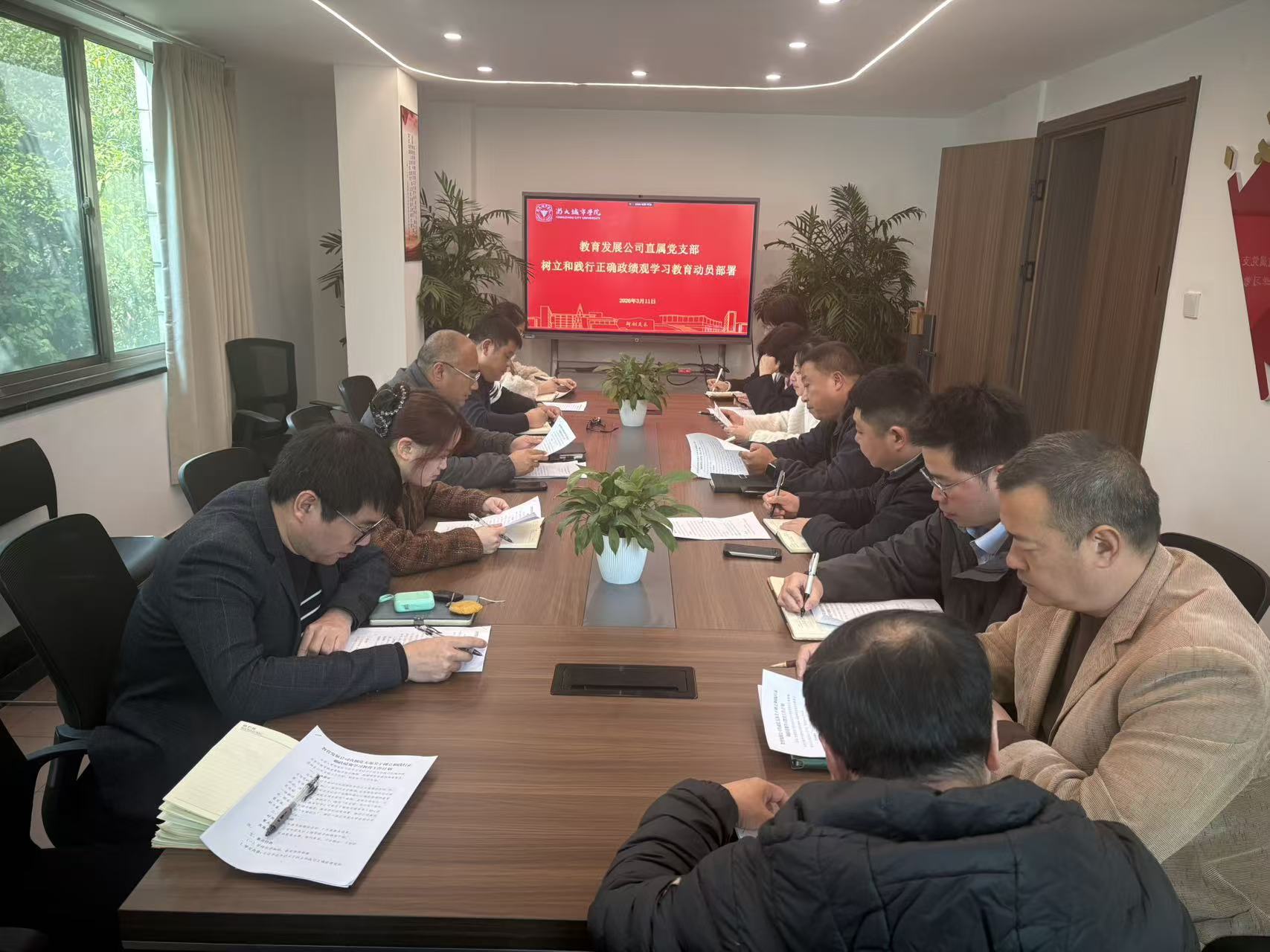 3月11日下午,公司召开支委(扩大)会议,传达学校党的建设领导小组(扩大)会议精神,部署启动树立和践行正确政绩观学习教育工作,公司班子成员、支委成员以及各部门负责人参与本次会议。 与会人员集中学习了校党委书记董悦在学校树立和践行正确政绩观学习教育动员部署会上的主持讲话。会议在学习传达学校相关工作要求时强调,在全党开展树立和践行正确政绩观学习教育,是以习近平同志为核心的党中央,着眼党和国家事业发展全局作出的重要部署,对于推动“十五五”开好局、起好步,为以中国式现代化全面推进强国建设、民族复兴伟业提供有力保障,具有重大而深远的意义。要准确把握树立和践行正确政绩观的内涵要义,以正确政绩观引领树立和践行正确教育观、学术观、事业观、发展观,构建“一观统领、四观同修”的思想认识与行动体系,为学校高质量发展提供坚强保证。 会议通报了公司《关于开展树立和践行正确政绩观学习教育工作方案》,按要求制定工作计划。会议要求,公司各部门要扛起主体责任,切实提高站位,以学习教育为新起点,树立和践行正确政绩观,健全落实长效化机制,推动“十五五”开好局、起好步,确保学习教育正确有力、健康有序,取得实效,促进学校和公司事业高质量发展。 |
